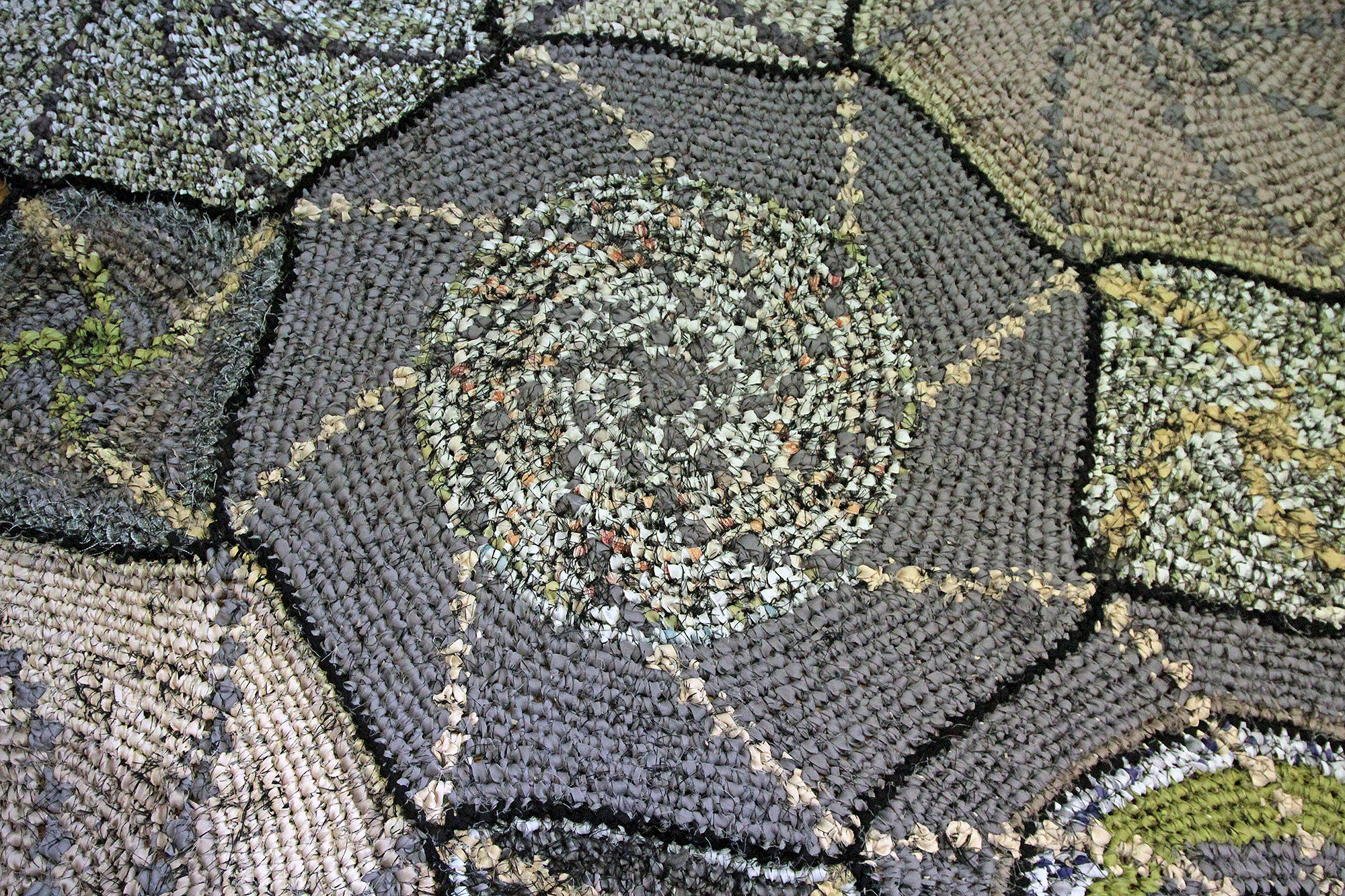 Horgolás sodratlan sötétítőfüggönyből készült szálra.