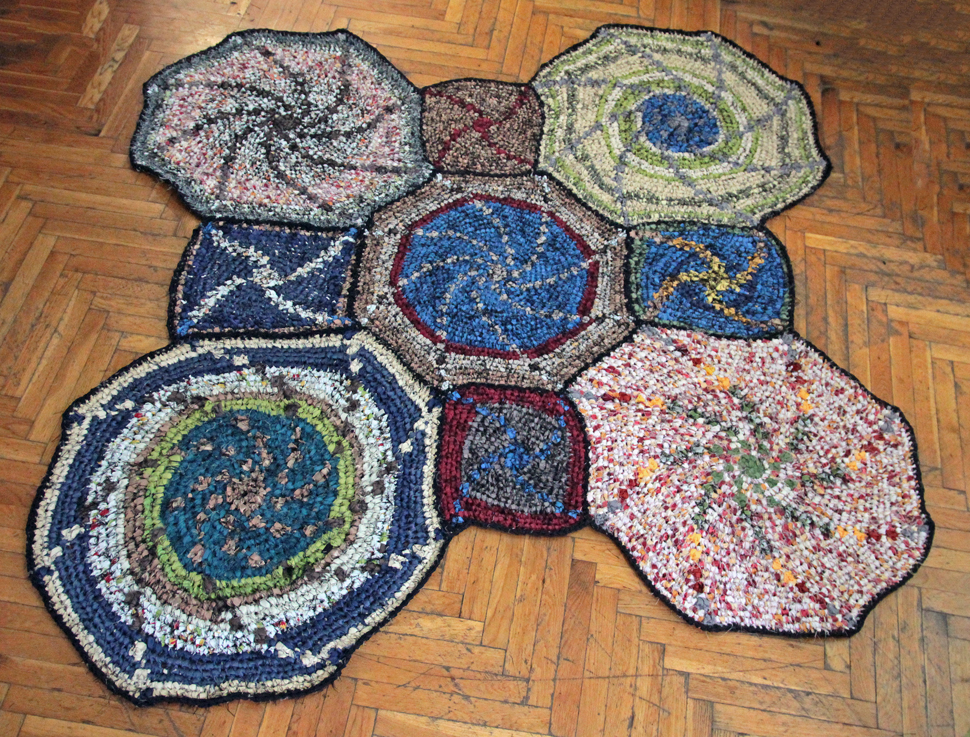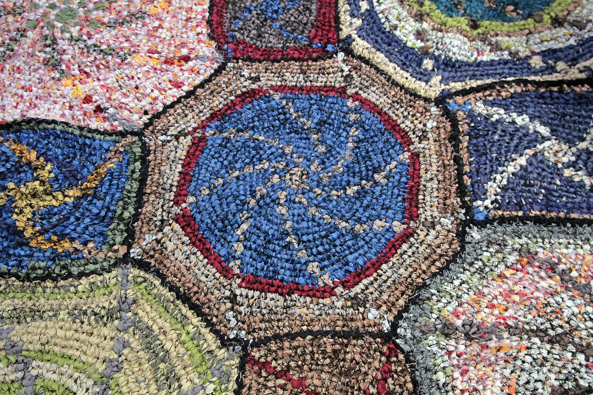 Horgolás sodratlan sötétítőfüggönyből készült szálra.