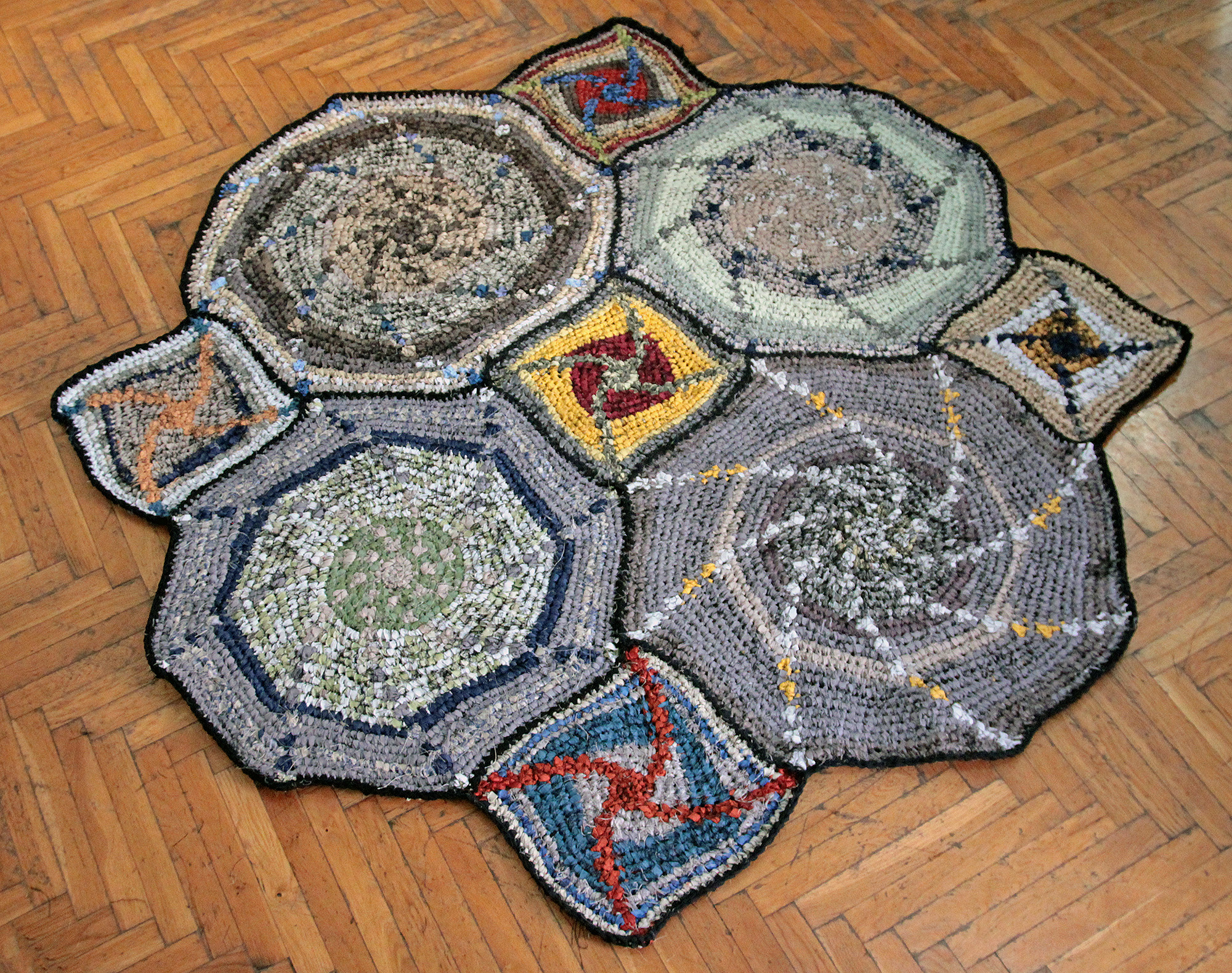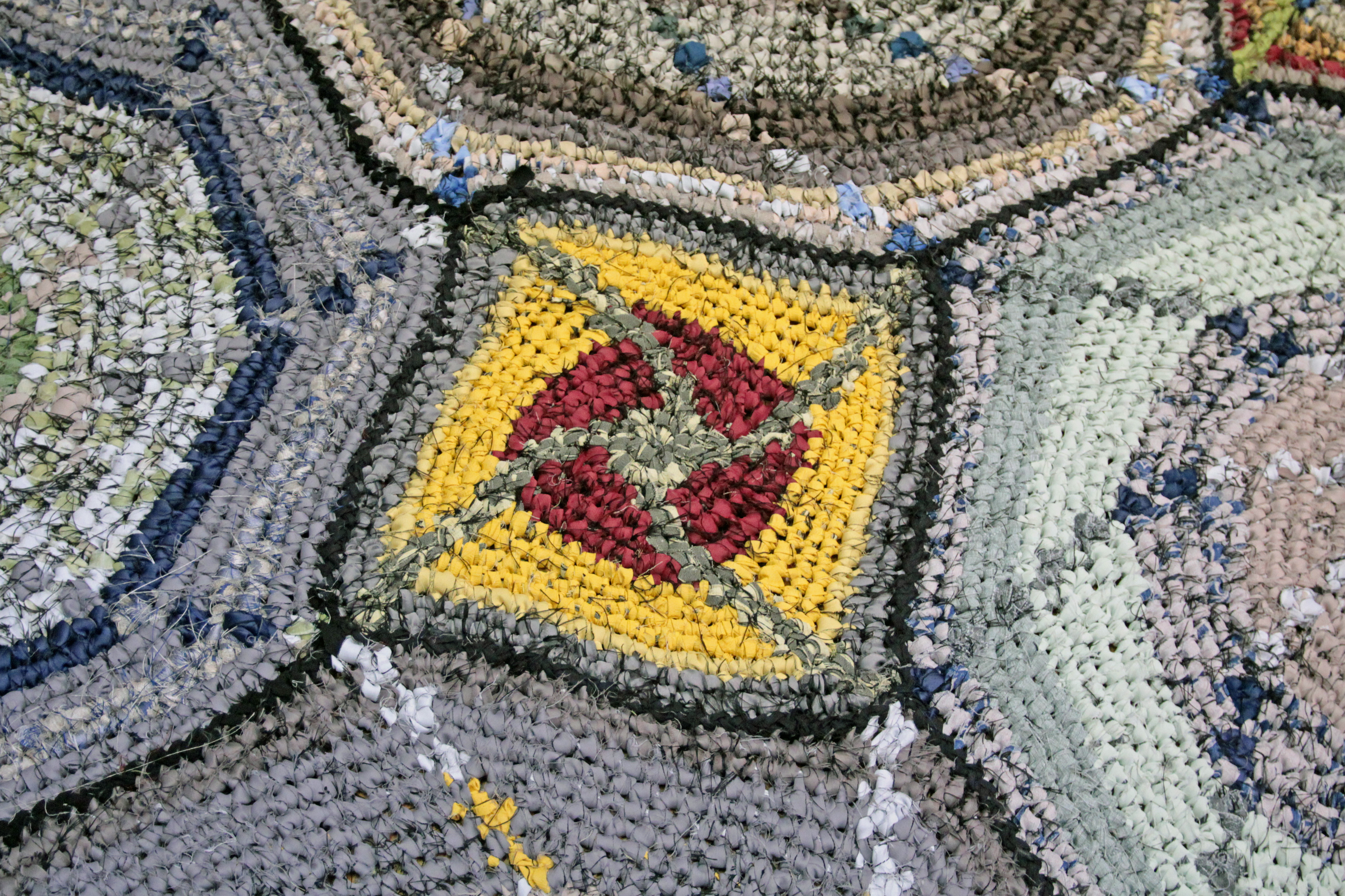 Horgolás sodratlan sötétítőfüggönyből készült szálra.