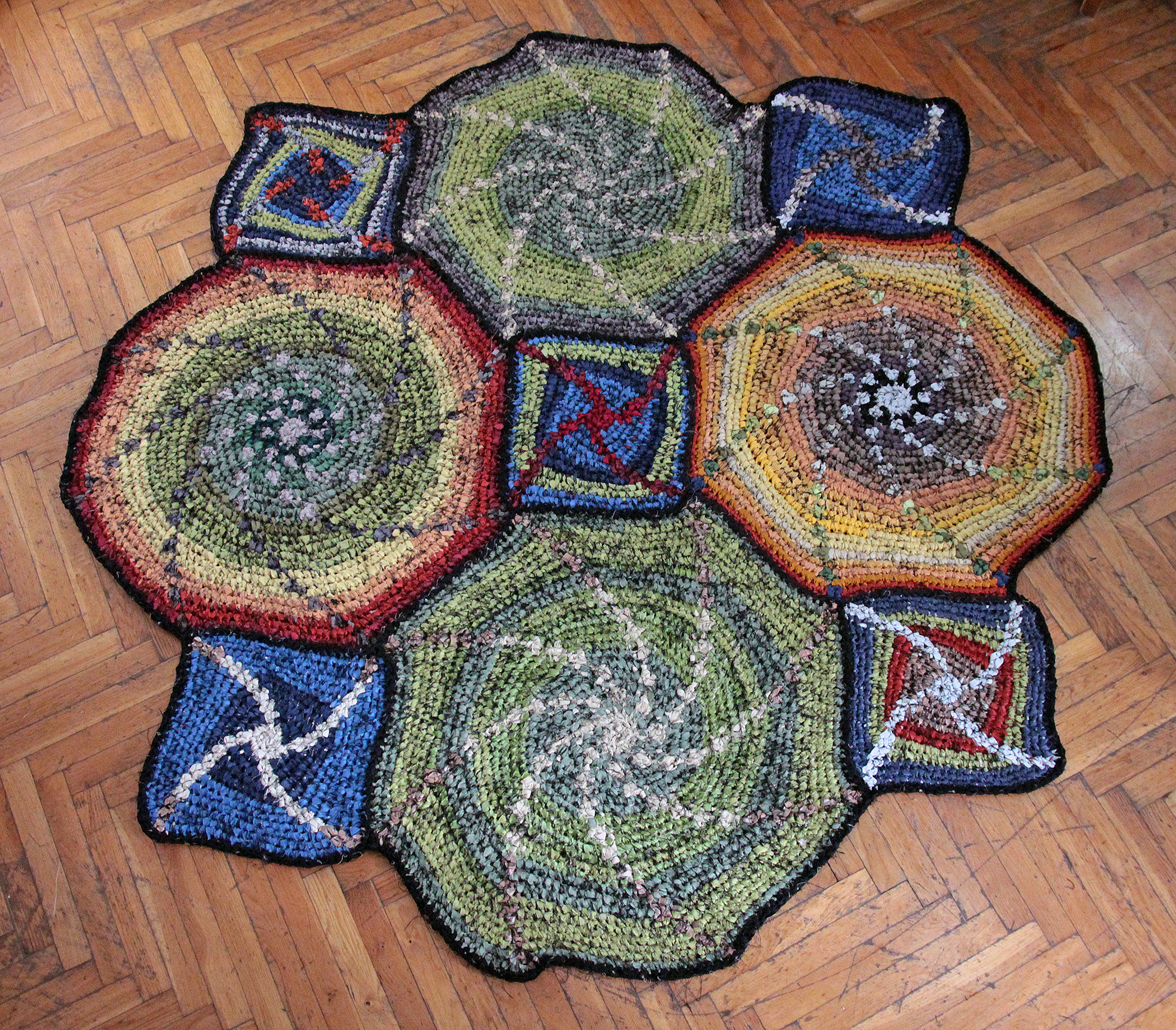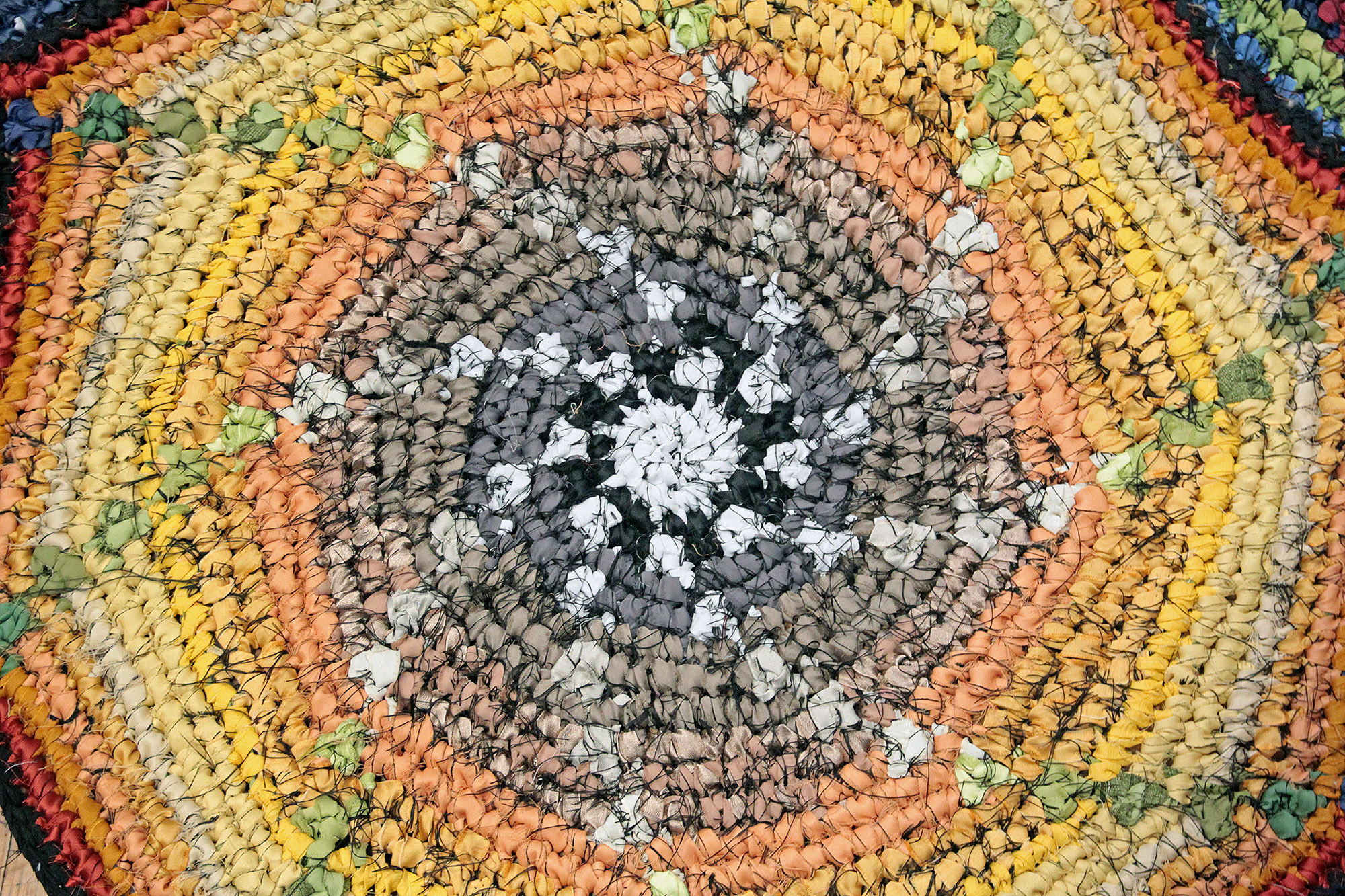 Horgolás sodratlan sötétítőfüggönyből készült szálra.
