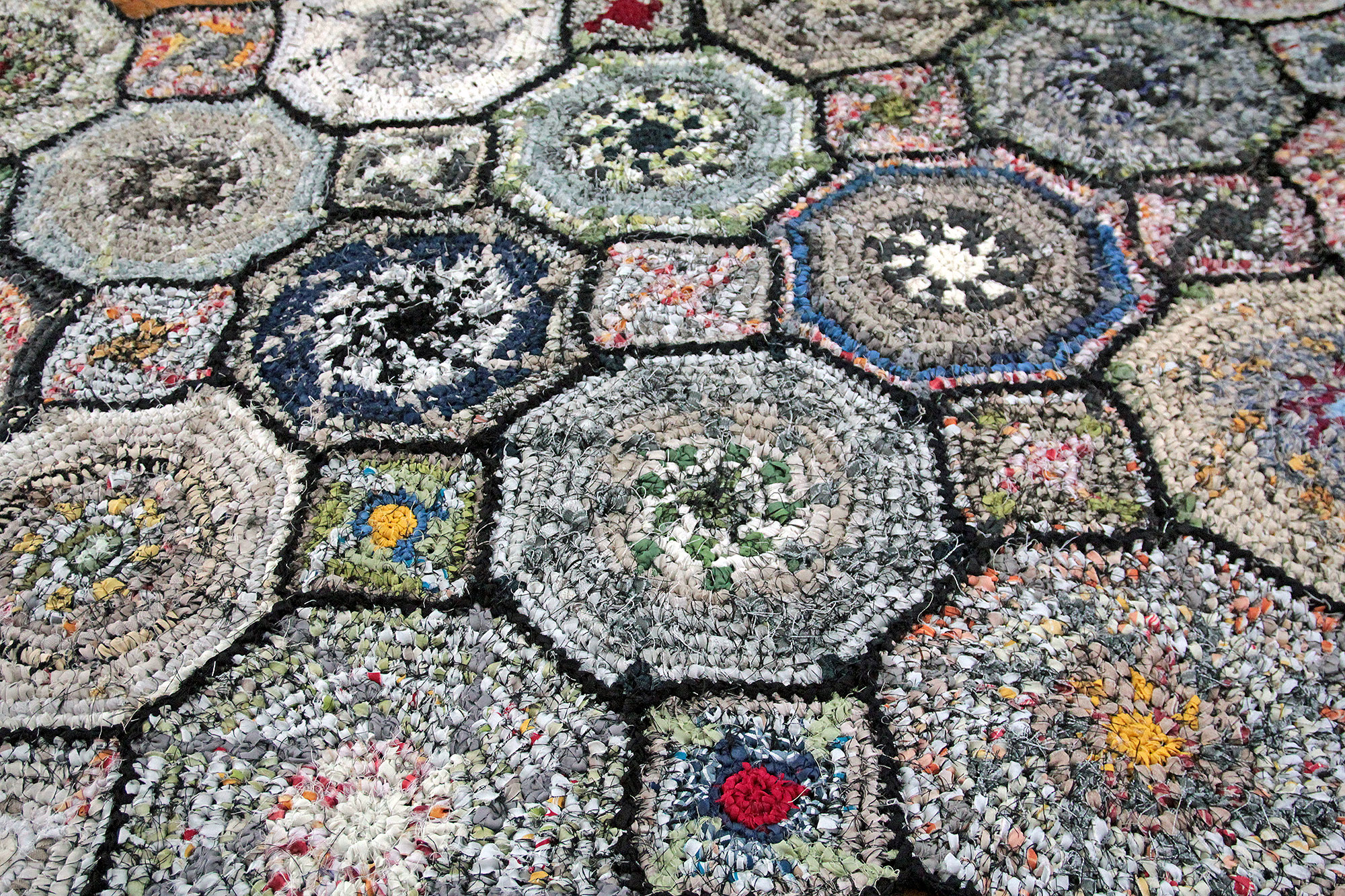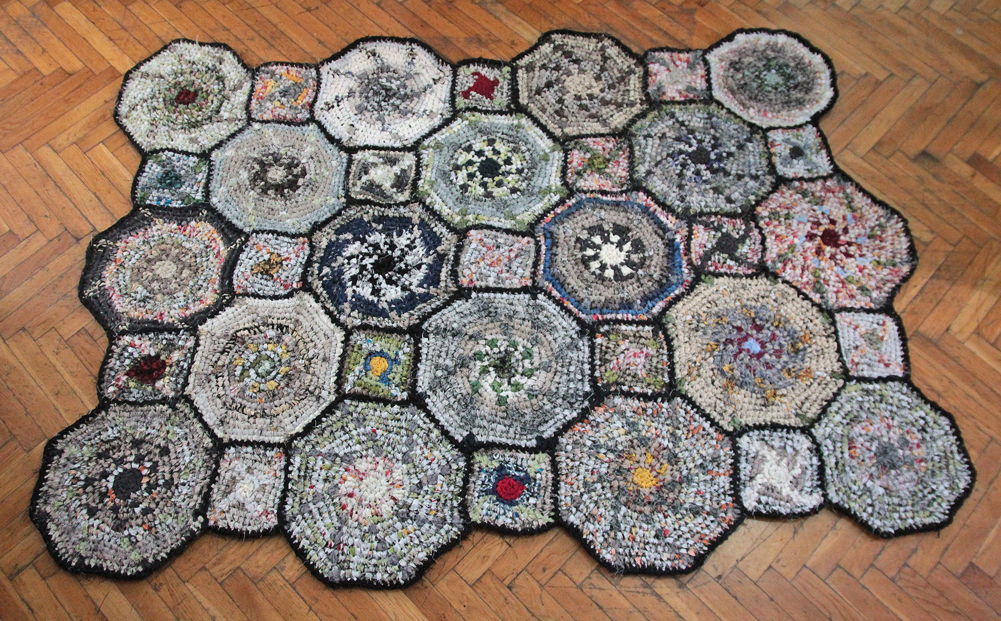 Horgolás sodratlan sötétítőfüggönyből készült szálra.