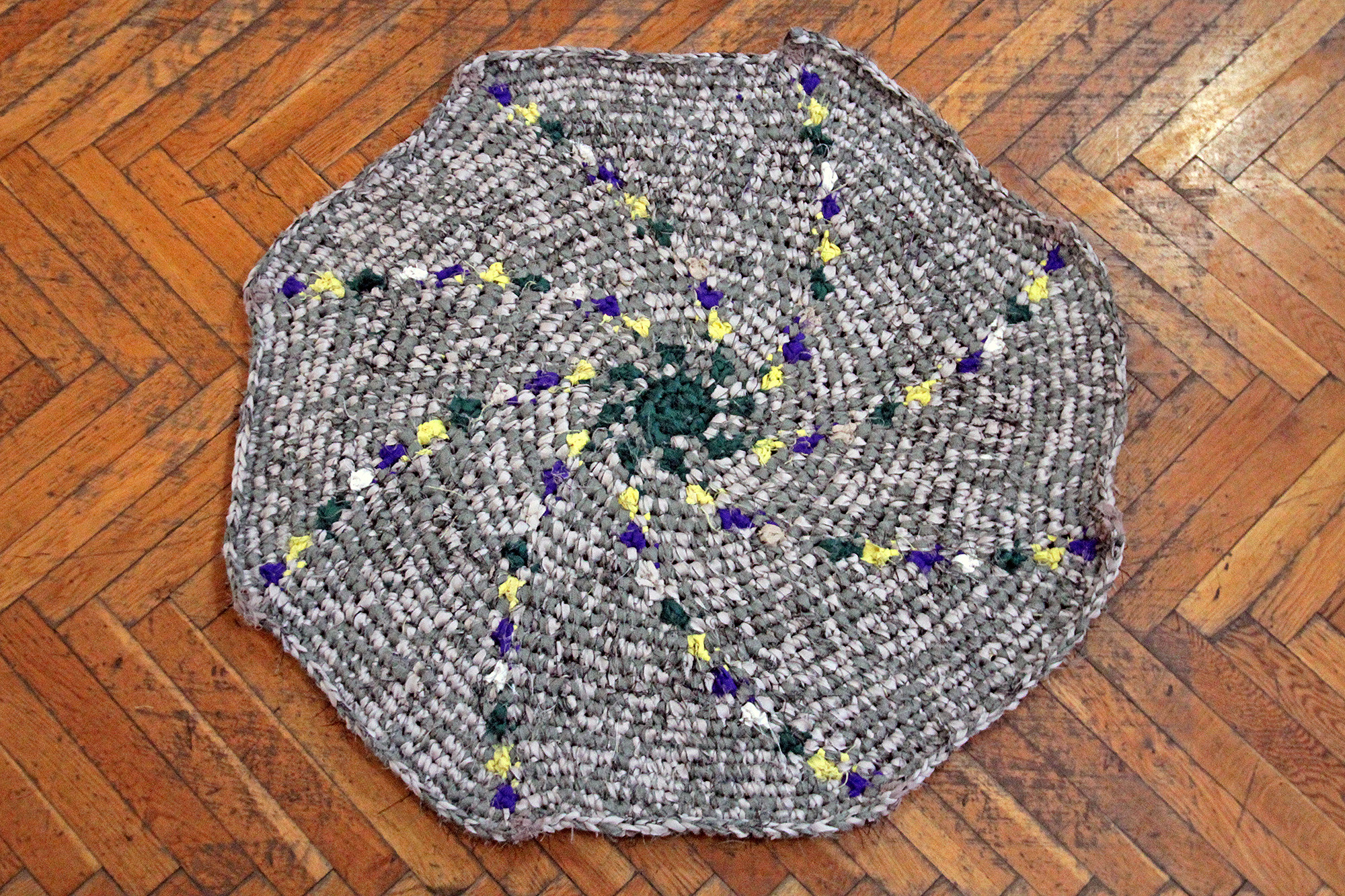 Horgolás sodratlan sötétítőfüggönyből készült szálra.