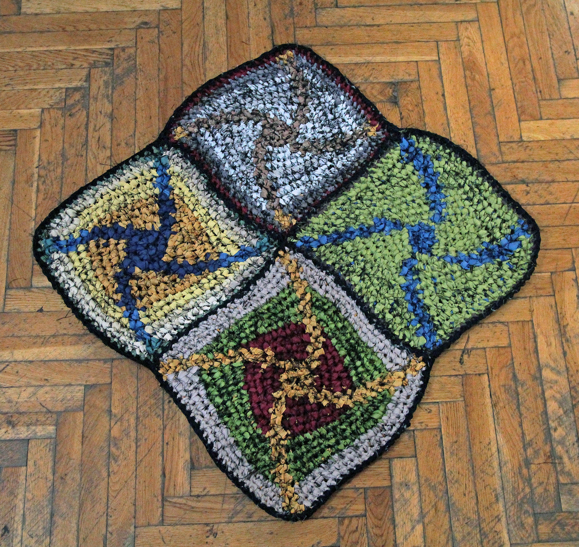 Horgolás sodratlan sötétítőfüggönyből készült szálra.