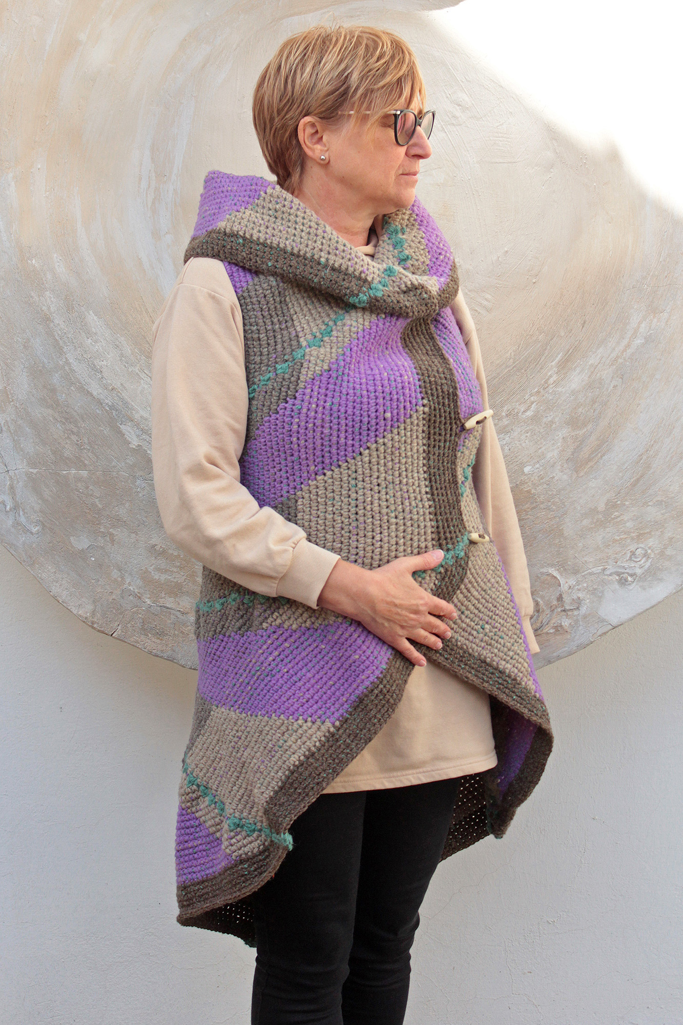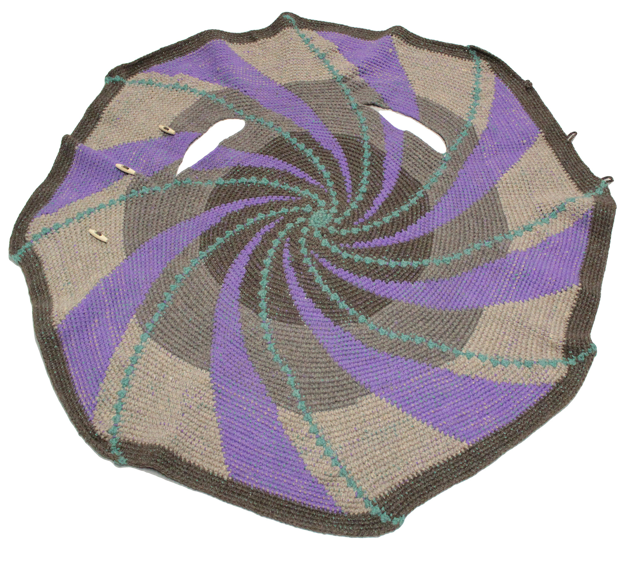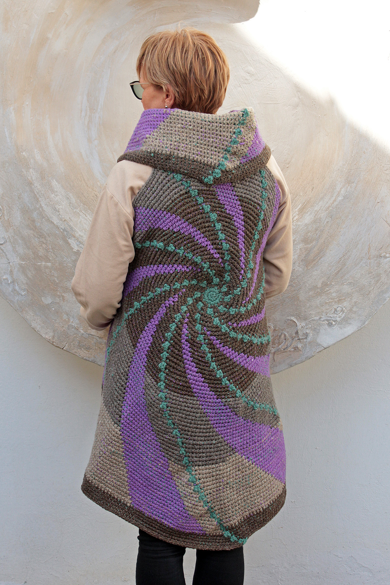 Gyapjúfonalból horgolt poncsó.