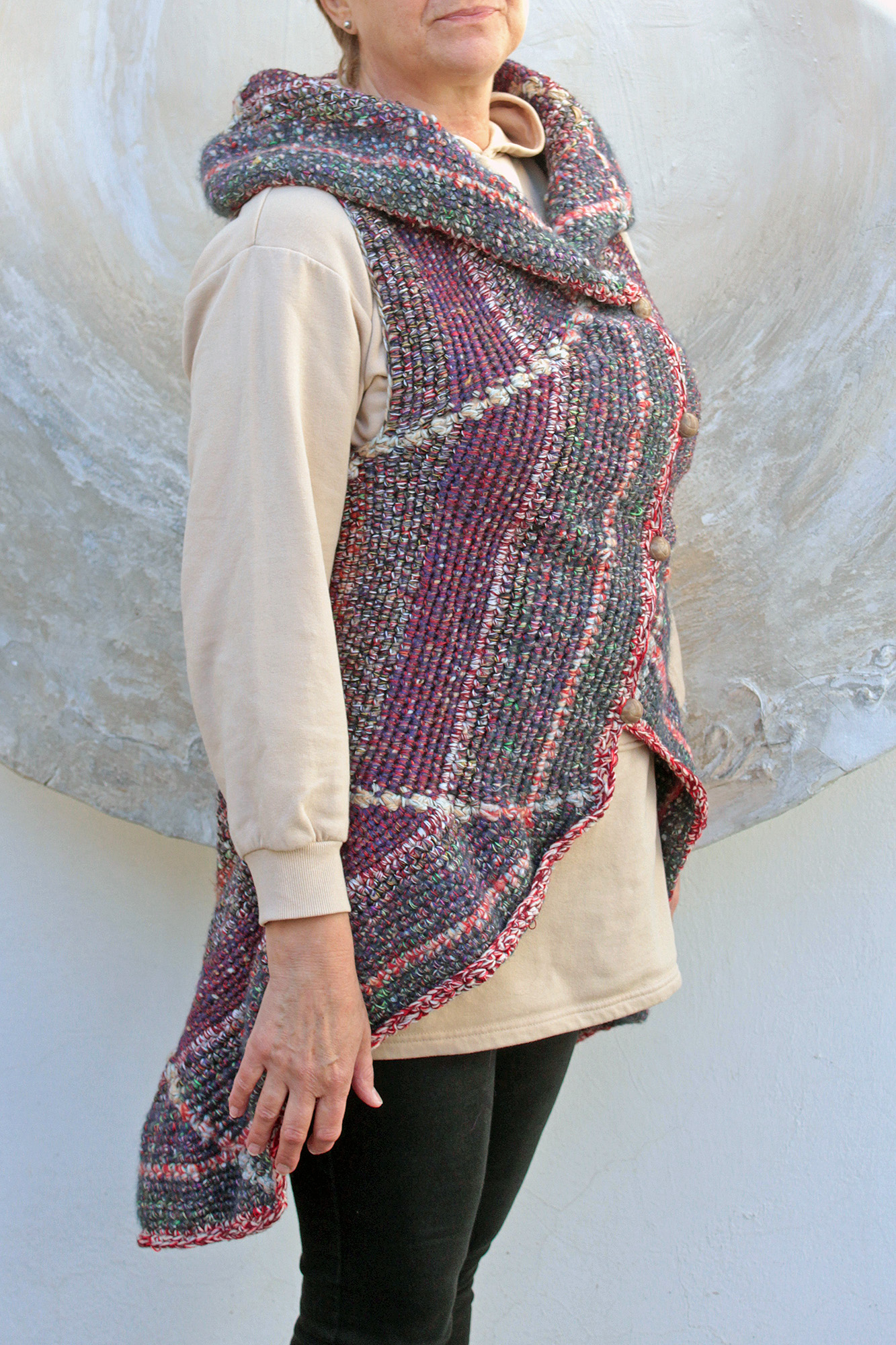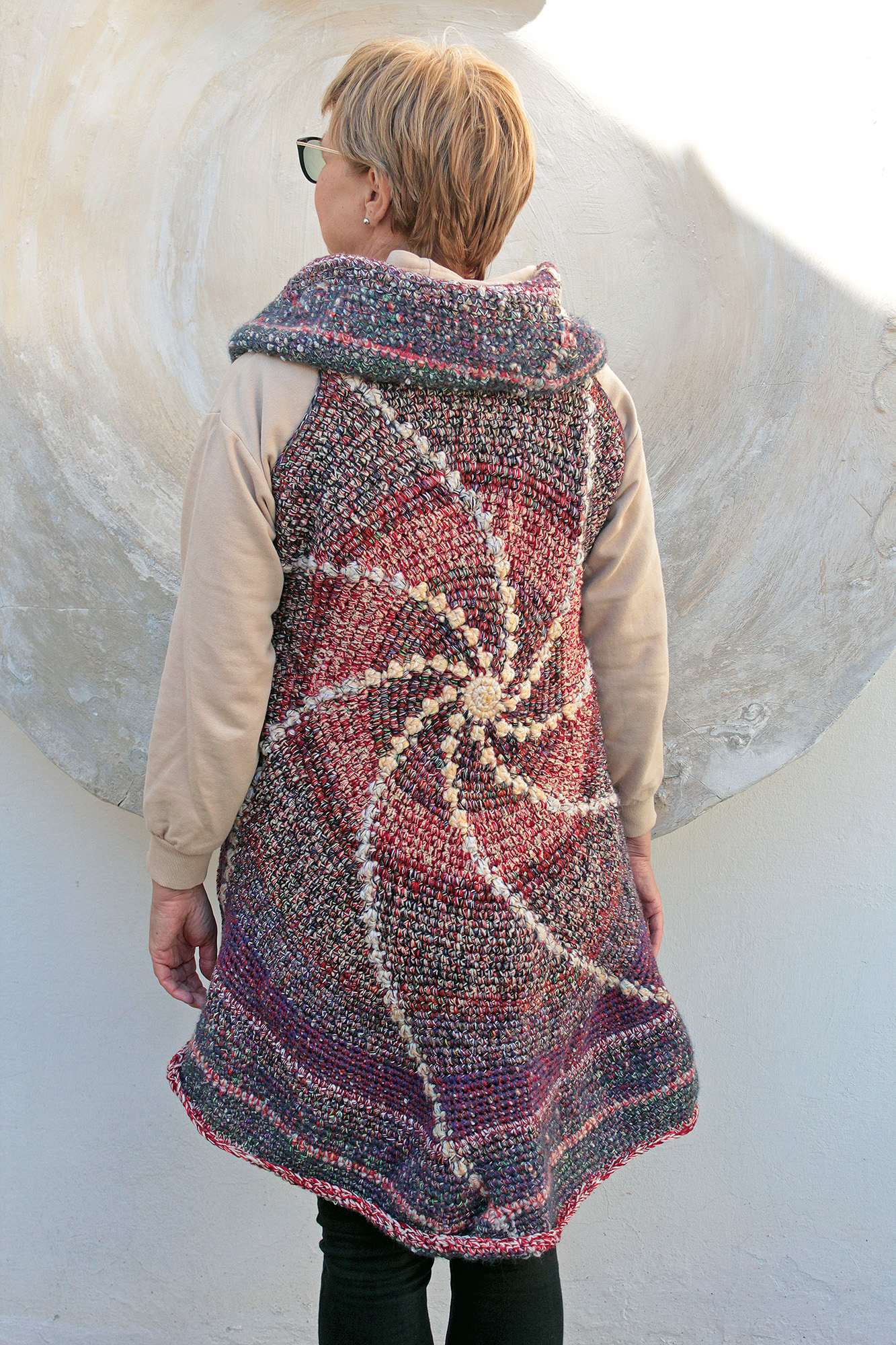 Fonalból horgolt poncsó.
