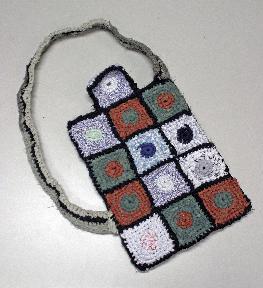 Vegyes vászonszálakból horgolt, egyrekeszes, nyitott válltáska.